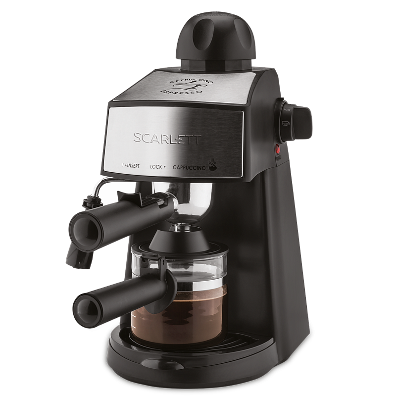 офеварка бойлерного типа SC-CM33004 мощностью 800 Ватт оснащена кофейником из термостойкого стекла. Классическое сочетание цветов с металической декорацией впишется в любой интерьер. Прибор оснащен давлением 3,5 Бар. Оптимальная емкость резервуара для воды 240 мл, съемный фильтродержатель, съемный поддон для сбора капель, мерная ложка с уплотнителем - сделают эксплуатацию прибора максимально простой. Кофеварка оснащена капучинатором, который позволяет взбивать молоко с самой густой пенкой и получить наиболее сбалансирванный вкус кофе, как в настоящей кофейне.