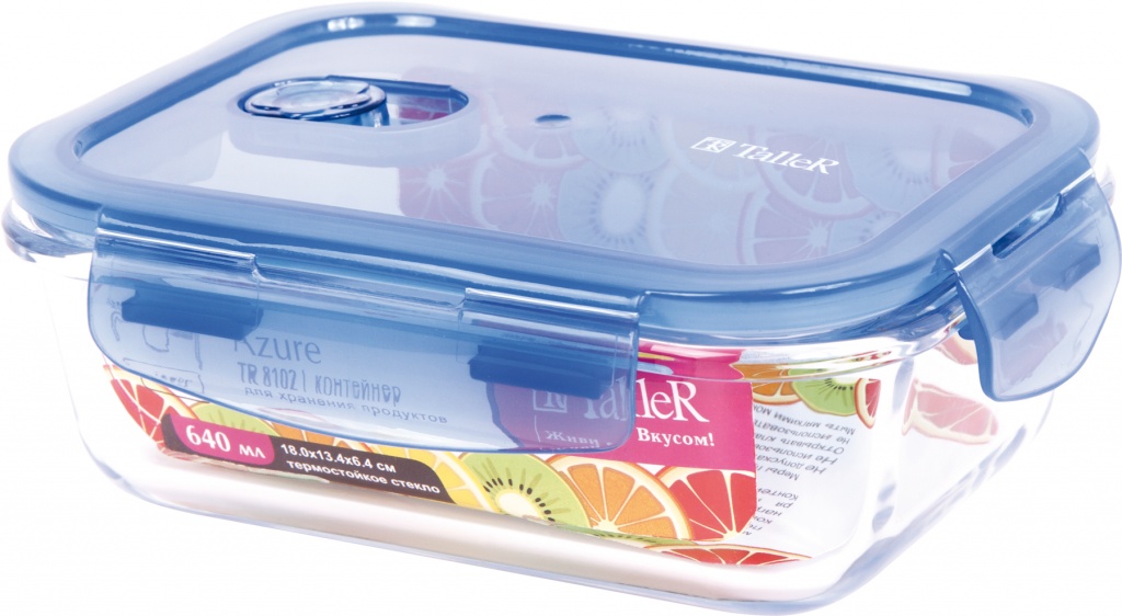 Герметичная крышка с клипсами и клапаном-паровыпуском; Стеклянный контейнер выдерживает нагрев до 400 градусов и может использоваться как форма для запекания; Допустимо использовать в холодильнике/морозильной камере, печи СВЧ. Объём, мл 1520