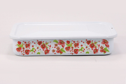 Лоток Маки Объем, л./размер, см: 2,5 литра Материал: эмалированная сталь Торговая марка: Лысьвенские эмали Крышка: эмалированная Внутреннее покрытие: эмаль Внешнее покрытие: эмаль