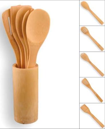 Набор кулинарных лопаток из бамбука. 6 предметов: 5 лопаток и подставка (стаканчик).