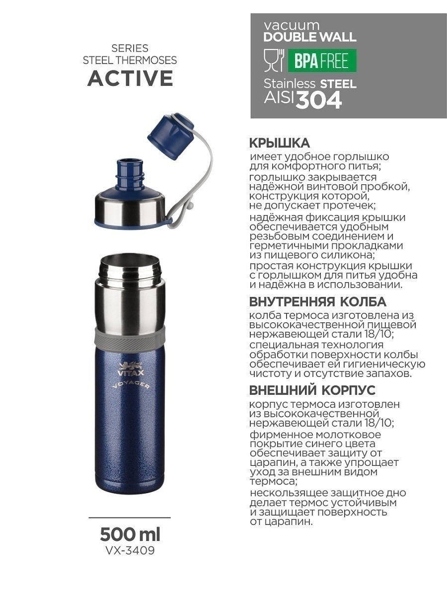Термофляга Vitax VX-3409/ 500мл Voyager