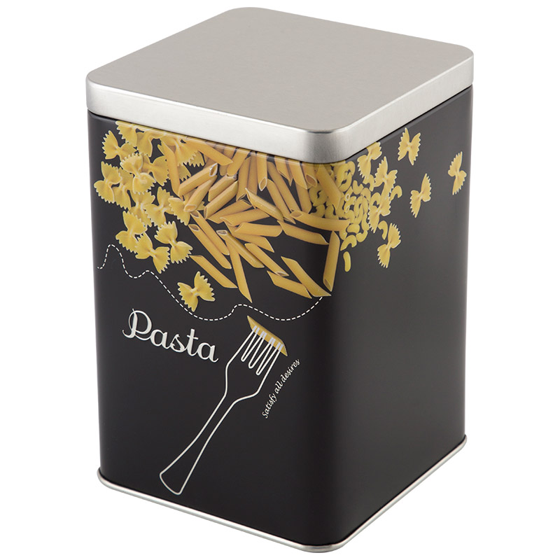 Банка с крышкой металлическая, квадратная, объем 1000 мл, дизайн "Макароны"