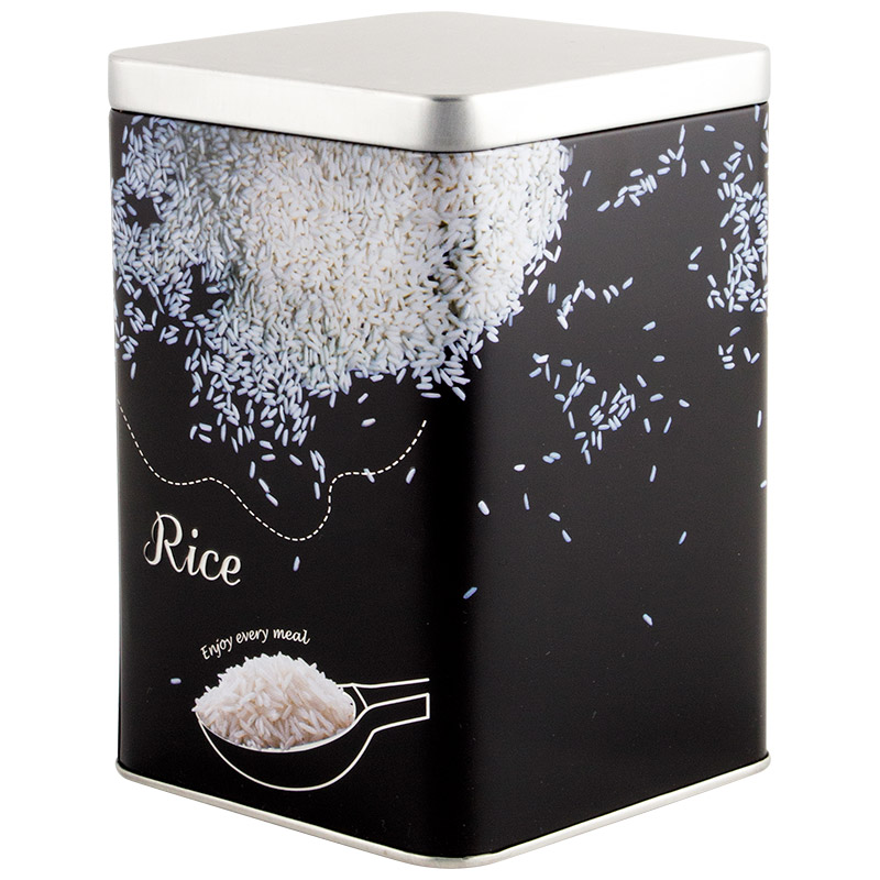 Банка с крышкой металлическая, квадратная, объем 1000 мл, дизайн "Рис"