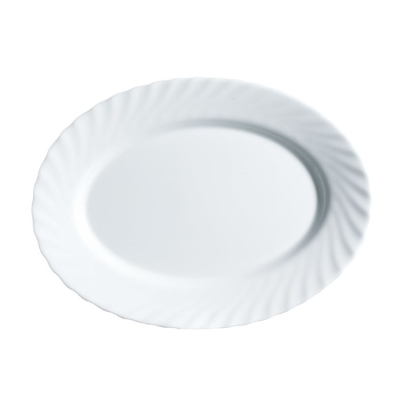 Овальное блюдо Trianon (Трианон) E9667 размером 35см. Блюдо изготовлено из белого стекла с рифлеными краями.