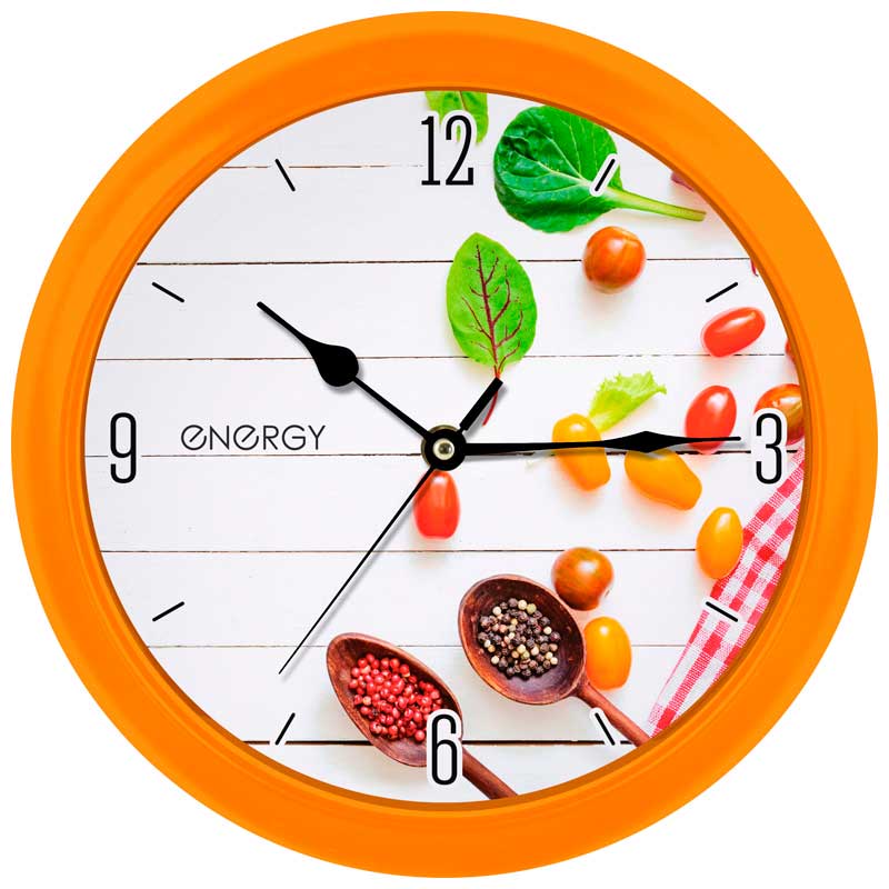 Часы настенные ENERGY ЕС-111 специи Питание: от 1 батарейки типа АА Размеры (ВхШхГ): 38x250x250 мм