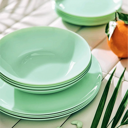 Изготовлена из ударопрочного стекла с ярким зеленым дизайном. Она идеально подходит для сервировки супов, крем-супов, бульонов и других первых блюд. Благодаря ударопрочности и термостойкости стекла, тарелка прекрасно сохраняет температуру блюда и легко выдерживает мытье в посудомоечной машине.