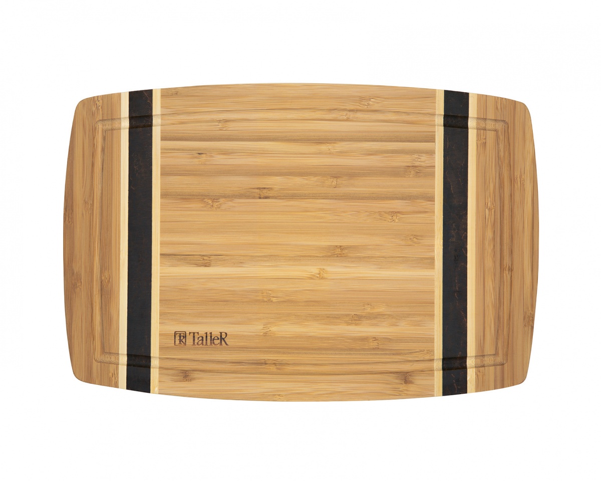 Доска разделочная TalleR TR-52218 с желобком Изготовлена из бамбука: натурального, экологически чистого, прочного и долговечного материала. Имеет две рабочие поверхности. Размер 39x26x1,9 см Чтобы разделочные доски прослужили вам дольше и сохранили свой вид, TalleR рекомендует время от времени смазывать их прогретым растительным (или оливковым) маслом. После того как масло полностью впитается, доска готова к использованию. Не рекомендуется использовать доски из бамбука в качестве подставок под горячее, а также в качестве стойки (колодки) для рубки мяса. Для ухода за разделочными досками достаточно мыть их в теплой воде, а затем тщательно вытирать.