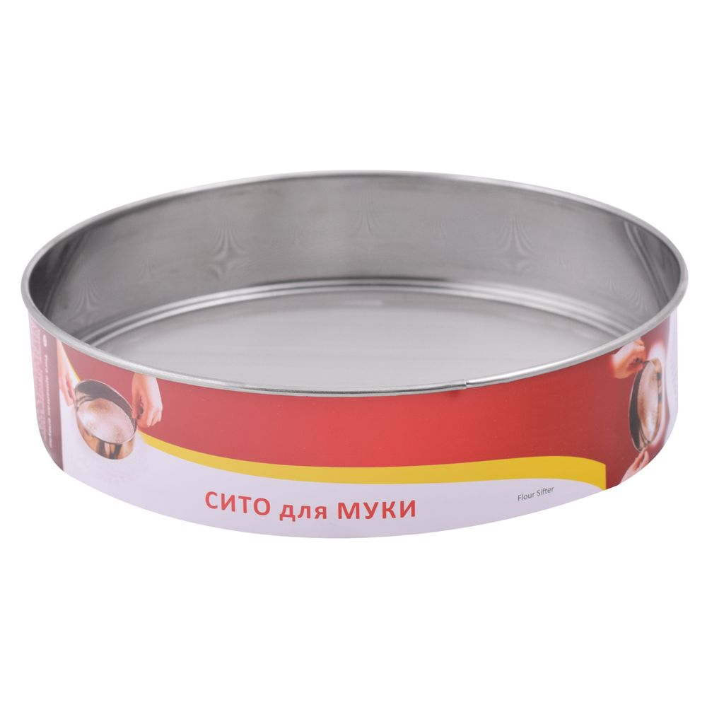 Удобное и простое приспособление — сито для муки уже несколько столетий используется хозяйками для приготовления теста. Просеивать муку необходимо для того, чтобы убрать из нее возможные примеси, а также сделать ее более рыхлой и воздушной. Насыщение воздухом делает тесто более нежным, воздушным и легким, а выпечка быстрее поднимается и получается более красивой внешне. Изделие имеет простую конструкцию, состоит из металлической мелкоячеистой сетки и обода. После использования промойте сито в теплой воде с жидкими моющими средствами. Диаметр 19 см, высота 4,5см. Изготовлено из коррозионностойкой (нержавеющей) стали.
