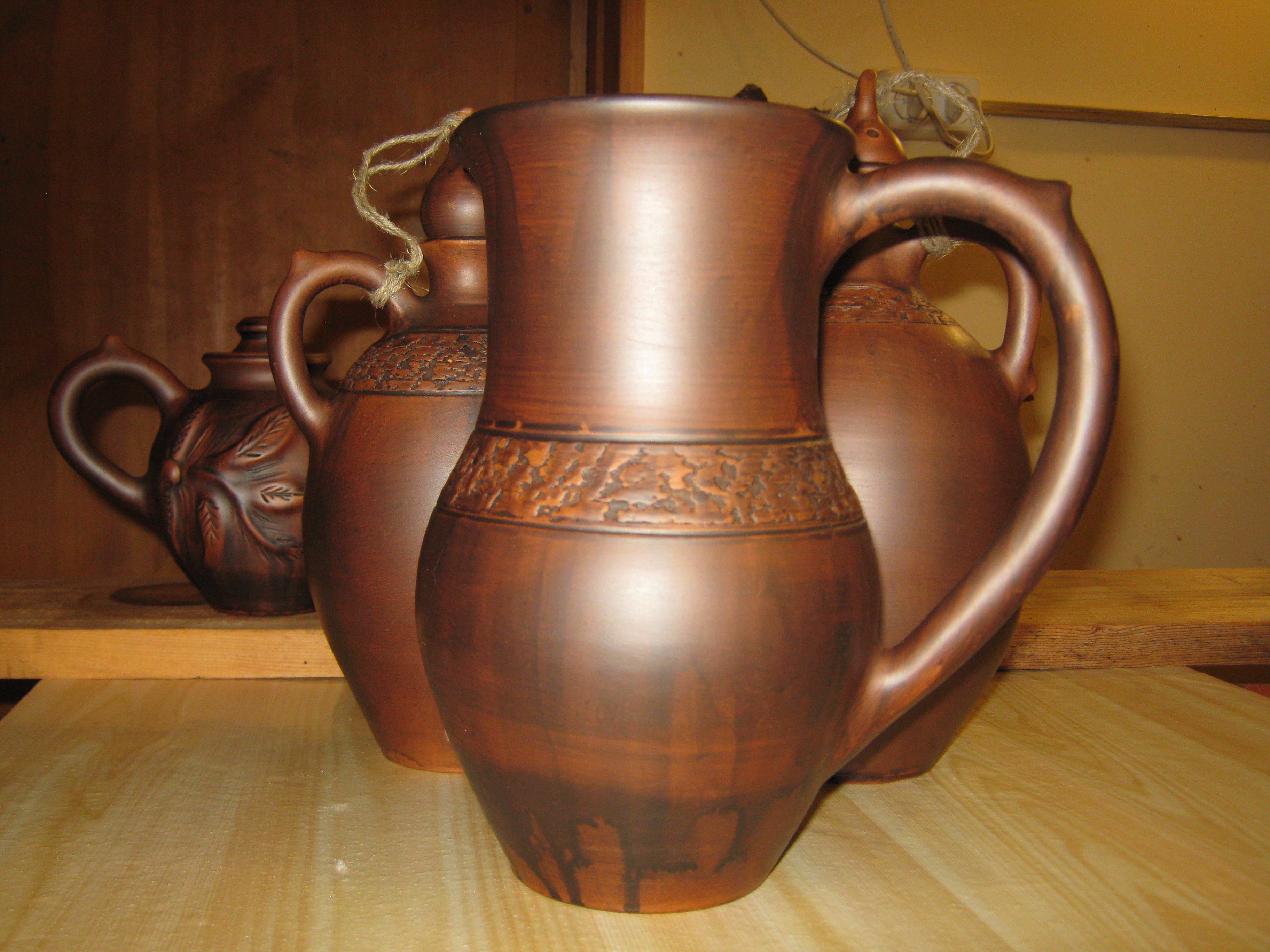 Все изделия выполнены гончарами Кирилловского района Вологодской области с использованием старинных народных технологий изготовления, каждая из которых придает изделиям особую фактурно-пластическую красоту.