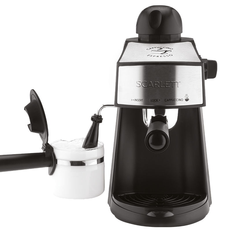 офеварка бойлерного типа SC-CM33004 мощностью 800 Ватт оснащена кофейником из термостойкого стекла. Классическое сочетание цветов с металической декорацией впишется в любой интерьер. Прибор оснащен давлением 3,5 Бар. Оптимальная емкость резервуара для воды 240 мл, съемный фильтродержатель, съемный поддон для сбора капель, мерная ложка с уплотнителем - сделают эксплуатацию прибора максимально простой. Кофеварка оснащена капучинатором, который позволяет взбивать молоко с самой густой пенкой и получить наиболее сбалансирванный вкус кофе, как в настоящей кофейне.