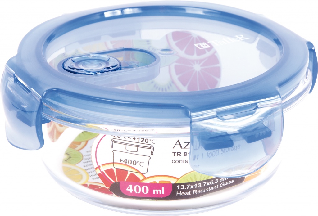 Герметичная крышка с клипсами и клапаном-паровыпуском; Стеклянный контейнер выдерживает нагрев до 400 градусов и может использоваться как форма для запекания; Допустимо использовать в холодильнике/морозильной камере, печи СВЧ. Объём, мл 950