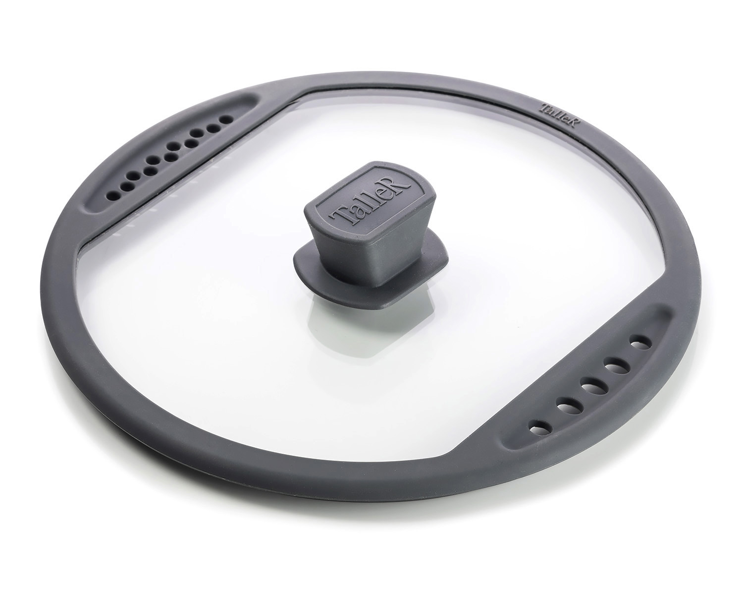 • Крышка 24 см • Силиконовый обод крышки предотвращает появление царапин и сколов на посуде. • Нескользящая силиконовая ручка безопасна и удобна в применении. • Перфорированный обод позволяет сливать лишнюю жидкость во время приготовления. • Перфорация силиконового обода позволяет готовить с закрытой крышкой, предотвращая выкипание.