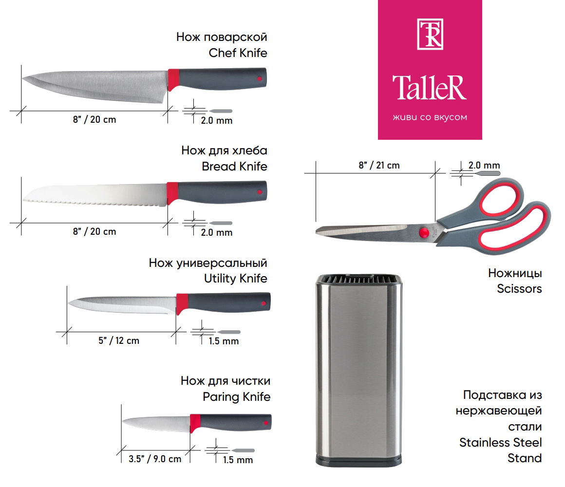 Лезвия ножей сделаны из коррозионностойкой стали AISI 420S45 (3Cr13).
