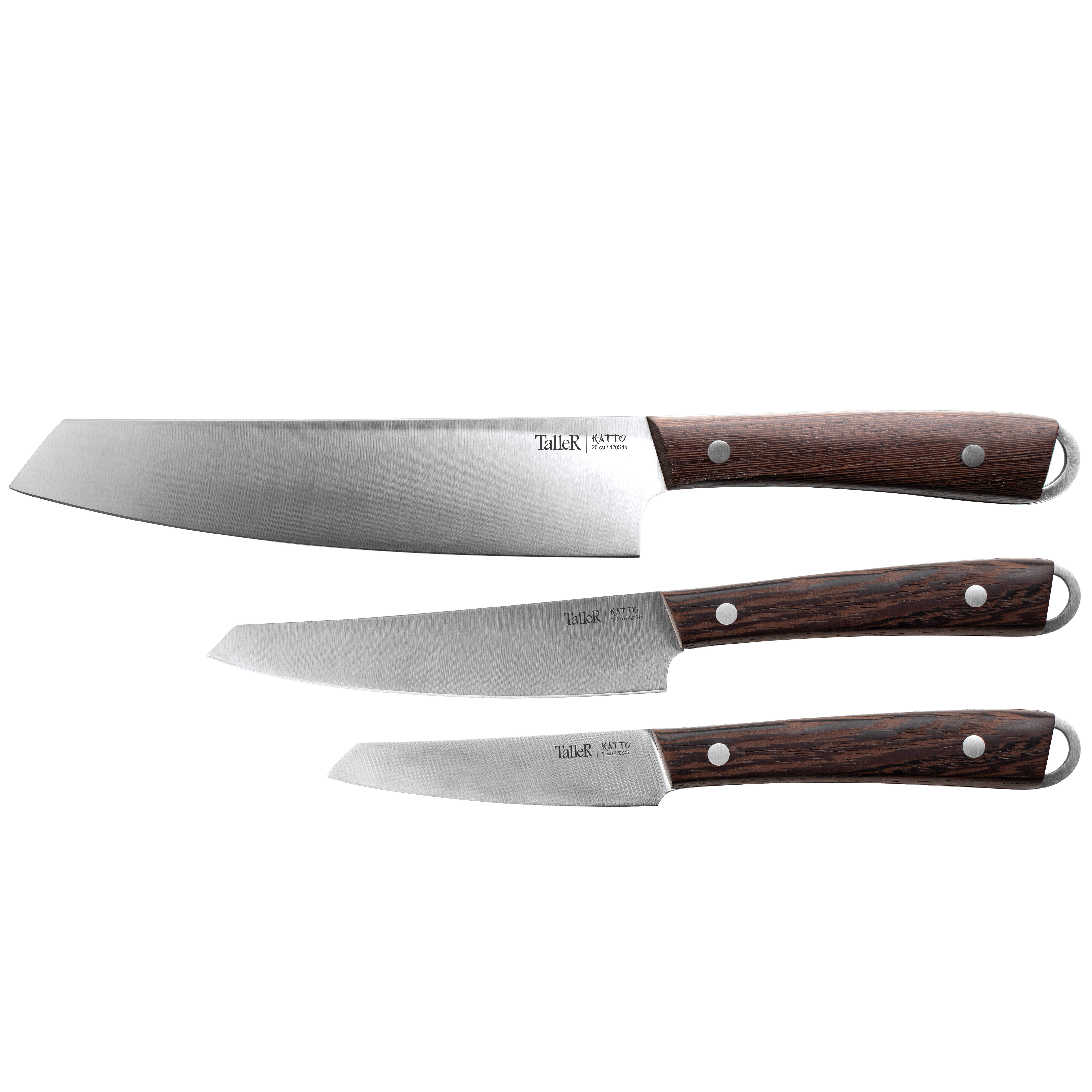 нож поварской 20 см, нож универсальный 12,5 см, нож для чистки 9 см