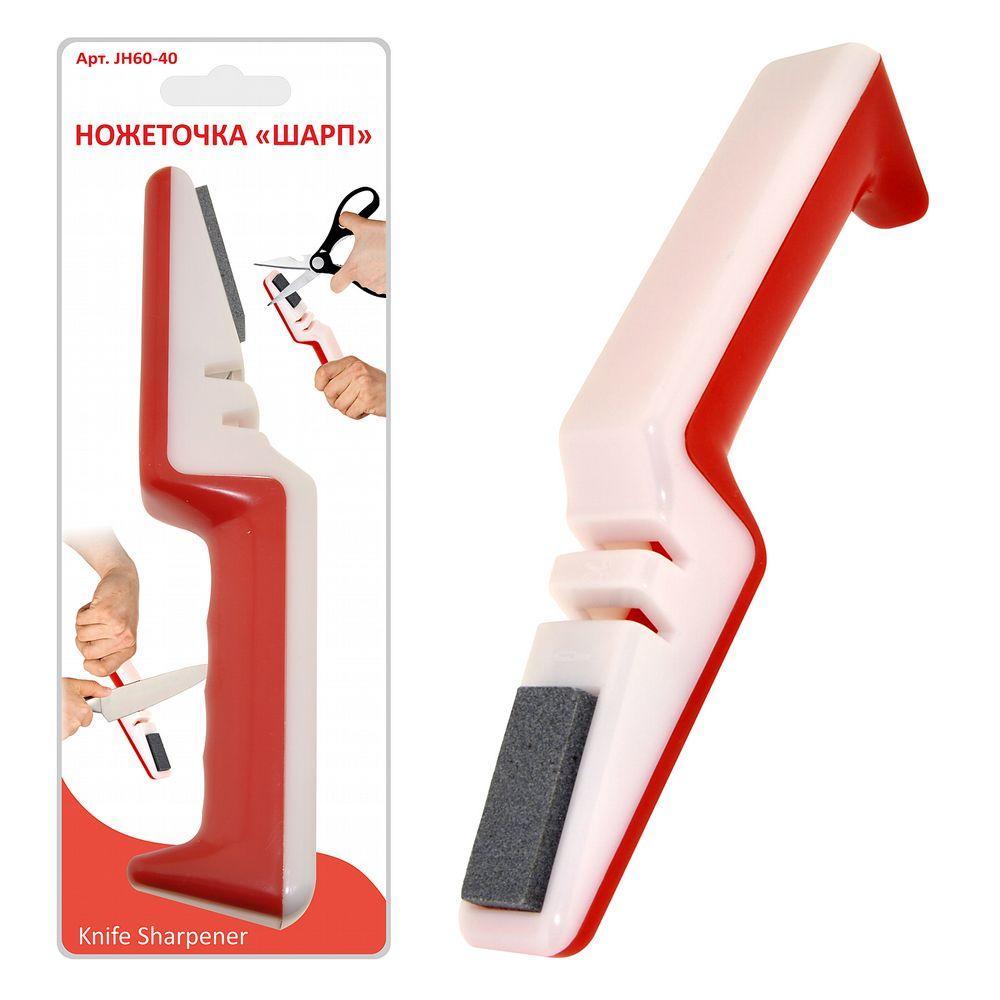 Ножеточка «Шарп» используется для заточки ножей и ножниц. Особенность модели в том, что здесь предусмотрено два вида обработки: с помощью дисков – простой и безопасный вариант для быстрой заточки лезвия. Чтобы лезвие заострялось равномерно, нужно держать нож ровно и не сильно давить им при затачивании; с помощью абразивного камня, где требуется более тщательный подход при заточке. Вначале обрабатывается одна сторона по всей длине, затем другая. Остро заточенный нож безопаснее, чем затупленный. Острые лезвия разрезают продукты легко, не требуется лишних усилий, следовательно, снижается опасность травмирования. Чтобы изделие прослужило дольше, после каждого использования очищайте его. Корпус изделия изготовлен из пластмассы, диски из стали, брусок производится из абразивного камня. Длина: 8,5 см Ширина: 3 см Высота: 26,5 см