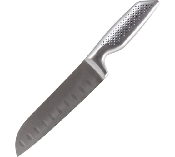 Сантоку, большой Цельнометаллический Размер лезвия 18 см Толщина - 2,5 мм Упаковка: двусторонний блистер.