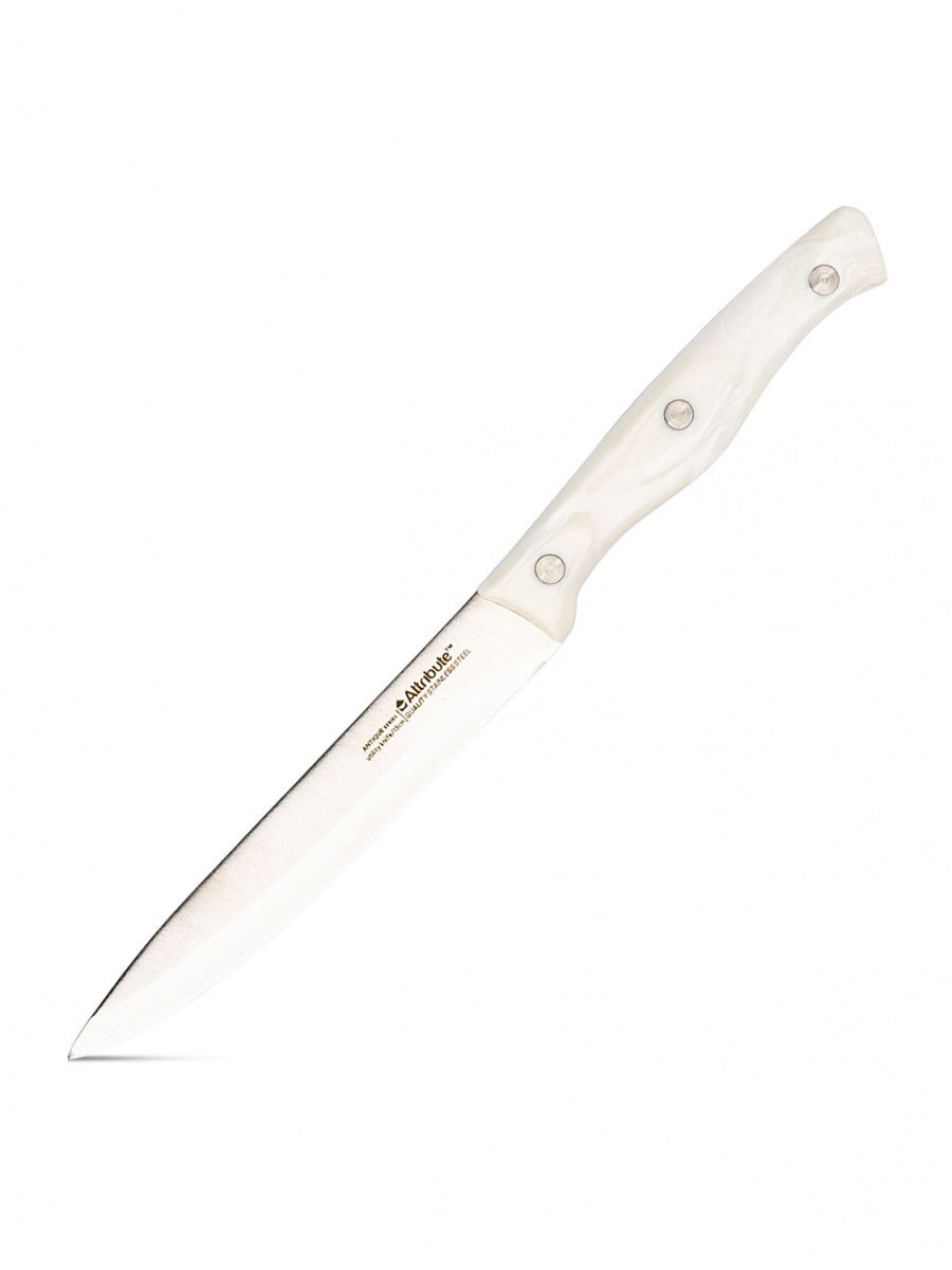 Универсальный нож "Antique" предназначен для нарезки различных продуктов. Лезвие выполнено из высококачественной нержавеющей стали. Эргономичная рукоятка, выполненная из термостойкого пластика, не скользит в руках и делает нарезку удобной и безопасной. Благодаря уникальной формуле стали и качеству ее обработки, лезвие имеет высокий показатель твердости, что позволяет ему долго сохранять острую заточку. Нож Attribute Knife "Antique" идеально шинкует, нарезает и измельчает продукты. Он займет достойное место среди аксессуаров на вашей кухне.