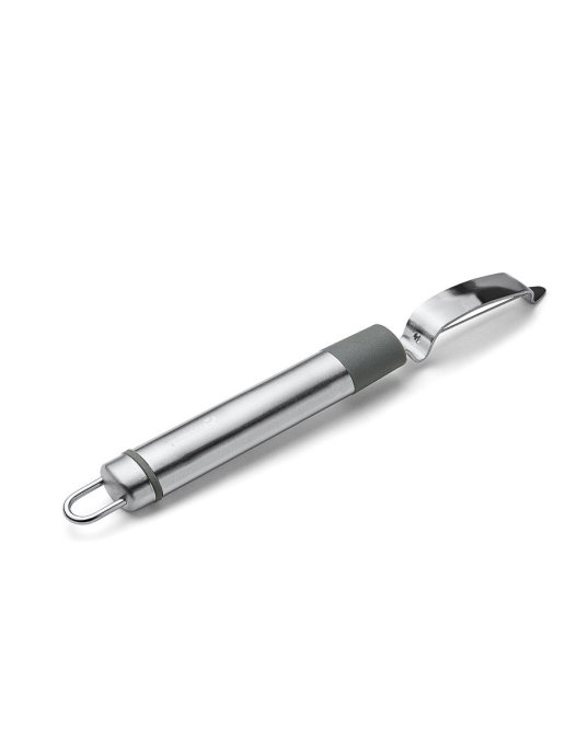 Картофелечистка предназначена для аккуратного удаления кожуры с овощей и фруктов. Изделие подходит для правшей и левшей благодаря двухсторонней заточке лезвия. Картофелечистка имеет петлю для подвешивания в любое место на кухне.Материал изготовления: нержавеющая сталь 410, пищевой пластик PP