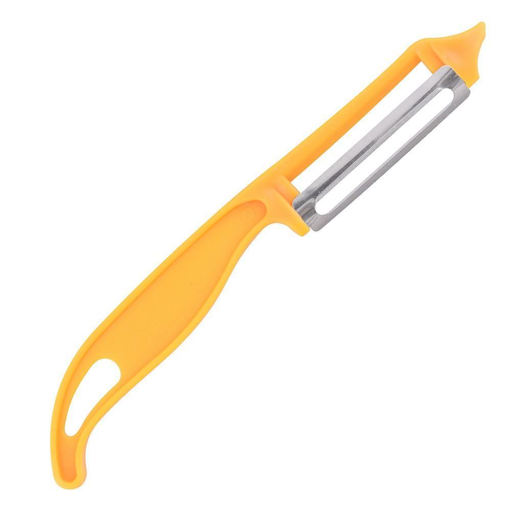 Ручная овощечистка аккуратно удалит кожицу с овощей и фруктов, поможет обработать трещины и глазки. Приспособление состоит из лезвия и удобной ручки. Специальная форма ножа делает тонкий срез, не нарушая целостность плодов или клубней. Овощечистка проста в применении и не нуждается в особом уходе. Яркий дизайн делает изделие заметным на любой кухне. Лезвие изготовлено из коррозионностойкой стали, ручка из пластмассы (полипропилен). Предмет промывается проточной водой с использованием моющих средств. Изделие производится в 3-х цветовых вариантах: желтом, оранжевом и зеленом. Похожие товары Длина: 7 см Ширина: 0,8 см Высота: 22 см