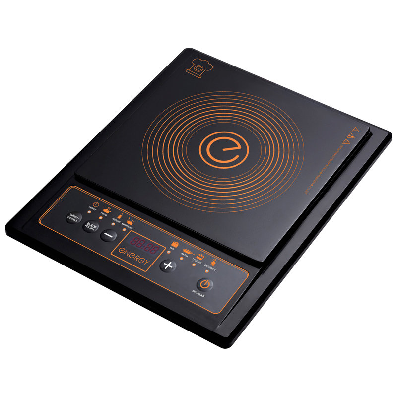 Плита индукционная ENERGY EN-919 Описание Тепло, вырабатываемое электрической плитой ENERGY подается непосредственно к посуде с помощью магнитного поля. Панель автоматически регулирует магнитное поле, создаваемое под размер дна посуды, так что очень мало энергии теряется в процессе приготовления. Варочная индукционная плита безопасна для использования, быстро и легко очищается. Она отлично подходит для дачи; ее можно использовать как стильное украшение на стол для вечеринки на открытом воздухе или на кухне в качестве дополнительной зоны приготовления пищи. Преимущества индукционной настольной плиты Просто подключить к любой стандартной розетке. Это делает ее очень удобным для перемещения. Легкая и компактная для перевозки и хранения. Цифровой ЖК-дисплей 6 режимов готовки. Диапазон температур от до 2000 Ватт Характеристики Нагревательный элемент индукционного типа Стеклокерамическая поверхность 235*235 мм LED дисплей Регулировка мощности 6 режимов приготовления: суп, молоко, жарка, варка, кипячение, тушение , поддержание температуры Режим автоматического выключения плитки при перегреве или при снятии посуды с поверхности Мощность: 2000 Вт Одна конфорка Таймер на время и отсрочку включения Режимы работы Тушение - режим разогрева и приготовления пищи. Ручной выбор мощности от 200 Вт до 2000 Вт кнопками "+" и "-". Время приготовления 120 мин до отключения. Жарка - приготовление пищи на сковородке. Температура 240°C. Время приготовления 60 минут Гриль - приготовление еды на сковороде при высокой температуре. Температура - 270°C. Время приготовления 60 минут Суп - готовит еду на мощности 1600 Вт. Время приготовления 120 минут, при окончании времени плита отключается автоматически. Молоко - режим кипячения молока, мощность 2000 Вт. Выставляется время 20 минут. Порядок работы Подключите прибор к сети, появиться на дисплее "OFF". Поставьте посуду на плиту. Нажмите кнопку "Вкл./Выкл.", на дисплее отобразиться "ON" Если во время приготовления снять посуду с плиты, то прибор перейдет в режим ожидания. Через 60 секунд после снятия посуды плита отключиться автоматически Кнопка "Таймер/Отсрочка" и "+" и "-" устанавливает необходимое время приготовления от 1 минут до 3 часов, отсрочки включения от 1 минуты до 23 часов 59 минут