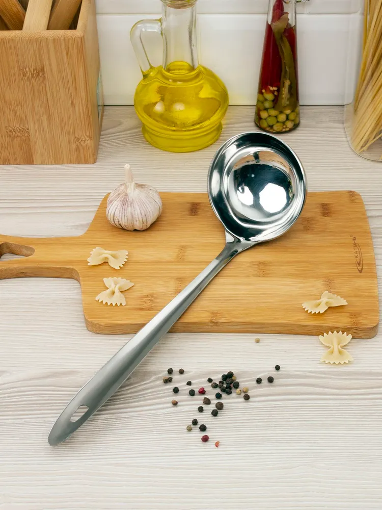 Половник из нержавеющей стали — идеальный помощник на вашей кухне! Этот половник изготовлен из высококачественной нержавеющей стали, что обеспечивает его прочность, долговечность и устойчивость к коррозии.