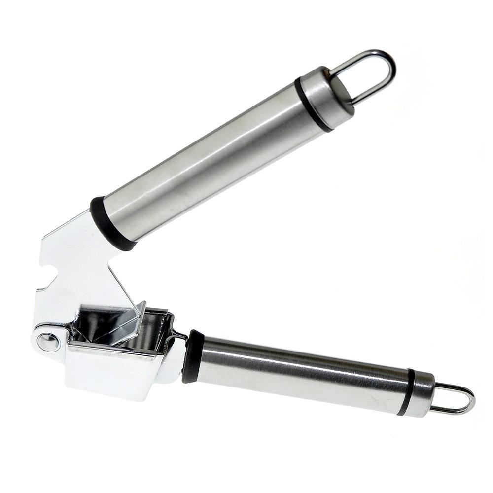 Измельченный чеснок — неотъемлемая часть многих блюд, он придает особый вкус продуктам и их сочетаниям. Для измельчения зубчиков традиционно используется чесноковыжималка — специальный пресс для чеснока. Изделие состоит из чаши с отверстиями и пресса, имеет две удобные ручки. На ручках есть петли, за которые инструмент можно повесить на крючки. Изделие изготовлено из коррозионностойкой (нержавеющей) стали. После применения рекомендуется мыть мягкой щеткой с использованием жидких моющих средств. Длина: 8,5 см Ширина: 3 см Высота: 22 см