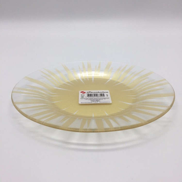 Производитель Pasabahce Тип тарелка десертная Серия ШАРМ Солнце Количество 1 шт. Диаметр 195 мм. Материал : стекло закаленное Использование в ПММ: да Страна производства Россия