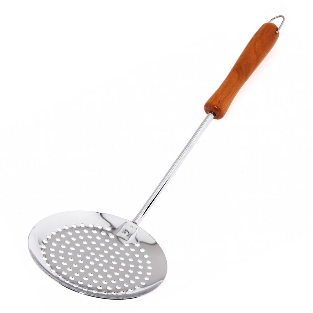 Используйте для снятия пенки надежную шумовку от «Мультидом», которая очень удобна при варке бульонов и варенья. Рабочая часть выполнена из хромированной стали, что гарантирует устойчивость к высоким температурам. Деревянная ручка обеспечивает комфорт использования, не нагревается и исключает ожоги. Довольно большая рабочая часть подходит не только для снятия пенки, но и для порционного раскладывания пельменей, вареников, вареных овощей и других блюд. Ручка оснащена металлической петелькой для удобства хранения на крючке. После использования вымойте изделие с жидкими моющими средствами. Длина: 11 см Ширина: 2 см Высота: 35 см