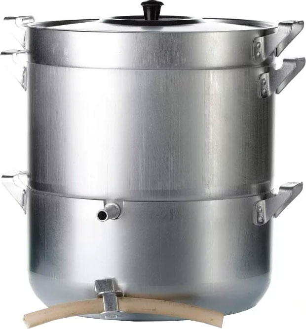 Принцип действия соковарки: Соковыделение происходит под действием пара, поступающего в дуршлаг с сырьем через отверстие в сокосборнике.