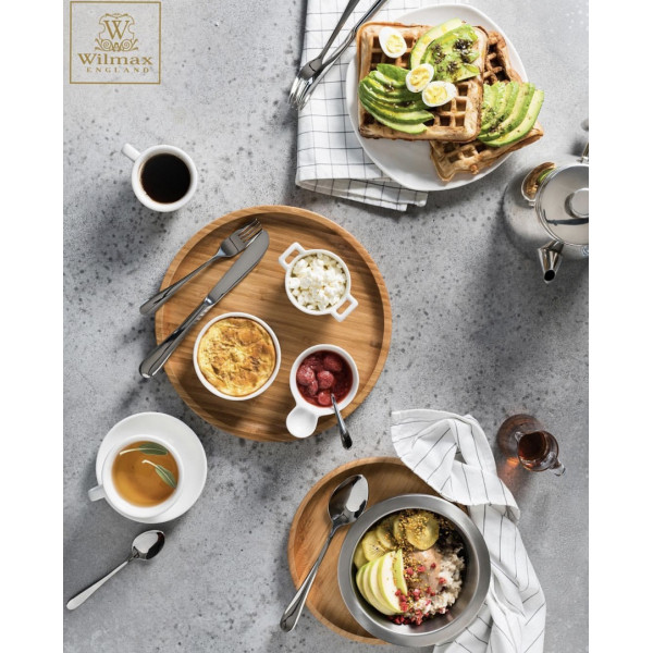 Сервировочная тарелка Wilmax изготовлена из натурального бамбука - прекрасного, долговечного, экологически чистого материала. Отличается красивыми, хорошо сбалансированными текстурами, водонепроницаемостью и термостойкостью. Бамбуковая тарелка идеально подойдет для подачи десертов и закусок, а также основных блюд при использовании подложки из пергаментной бумаги. В сочетании с фарфоровой посудой Wilmax бамбуковое блюдо позволит создать особенную атмосферу легкости за Вашим столом. Серия посуды из натурального бамбука станет отличным дополнением при подаче кулинарных шедевров, натуральный бамбуковый цвет которой будет превосходно гармонировать с молочными оттенками фарфоровых изделий Wilmax.