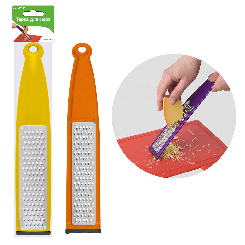 Терка для сыра удобна в использовании, не занимает много места и легко моется. С помощью нее вы легко сможете потереть сыр на пиццу, в салат или любое другое блюдо. Размер изделия позволяет натереть сыр прямо над блюдом. После использования промойте терку под проточной водой, можно с жидкими моющими средствами. Изготовлено из коррозионностойкой (нержавеющей) стали и пластмассы (ABS). Длина: 7 см Ширина: 1 см Высота: 35,5 см