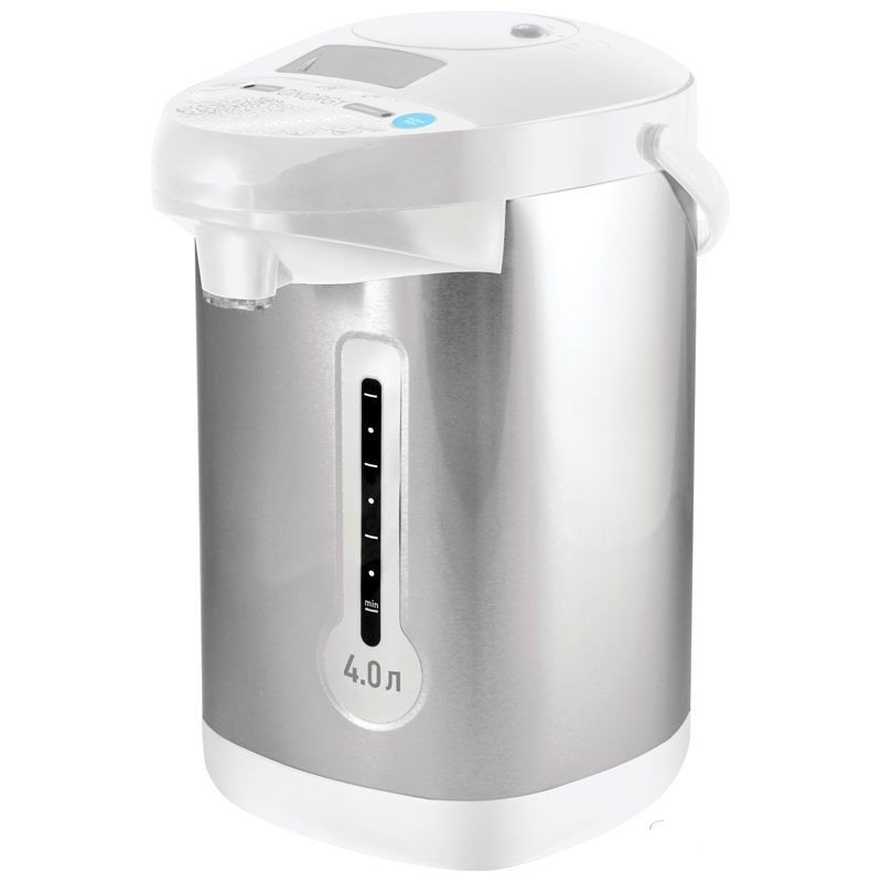 Energy TP-619 Чайник термос электрический 4 л 750 Вт с автоматической и ручной подачей воды Габариты в упаковке: 25,8x26,2x37,6 см Объем 4 л 3 способа подачи воды: автоматическая (нажатием кнопки, нажатием чашкой) и ручная Блокировка ручной помпы Функция повторного кипячения Функция поддержания температуры Быстрое кипячение воды Энергосберегающий принцип работы Скрытый нагревательный элемент Нержавеющая стальная колба Индикатор уровня воды Вращающийся корпус на 360? Съемный шнур питания Корпус из нержавеющей стали Мощность 750 Вт Мощность в режиме поддержания температуры: 35 Вт