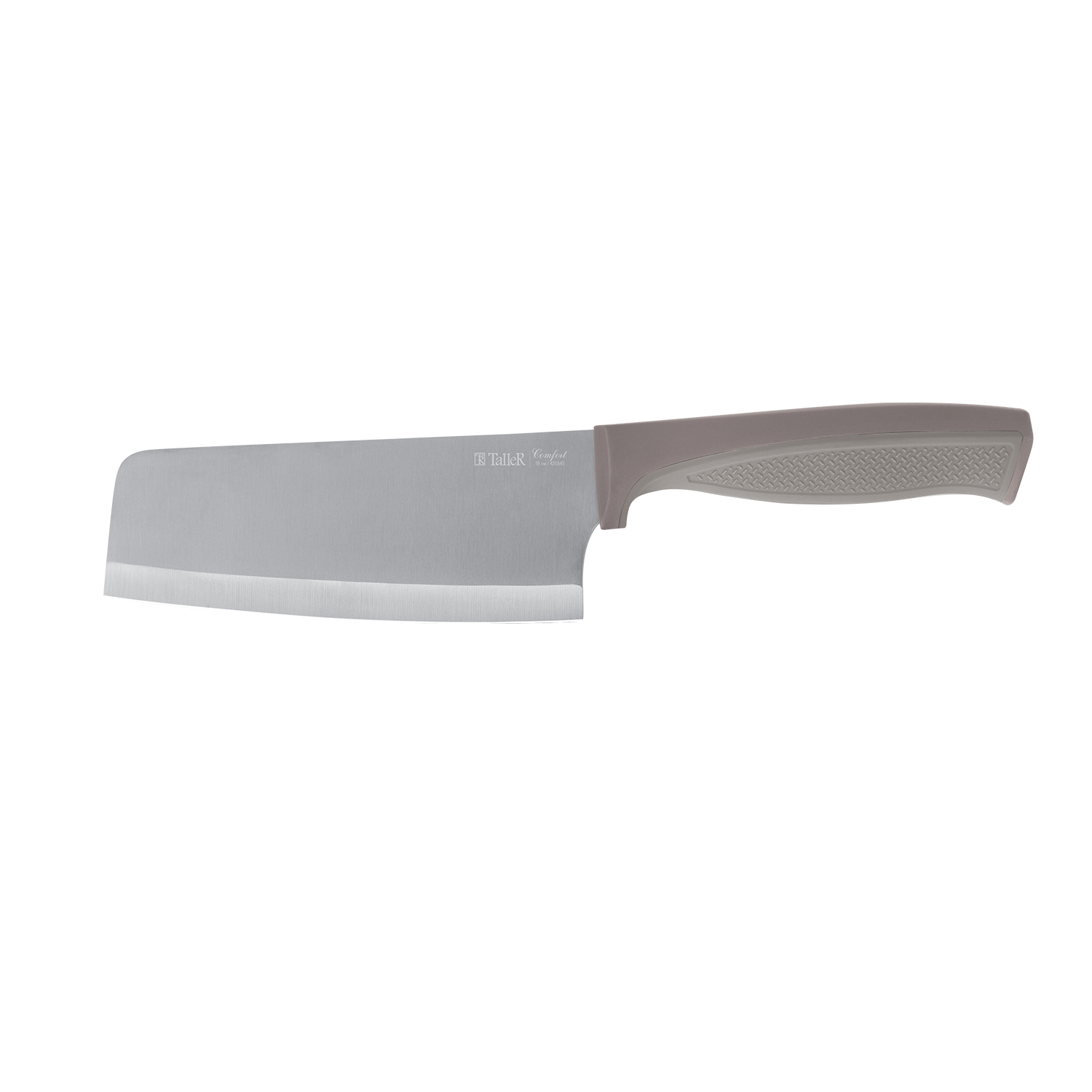 Подходит для разделки крупных кусков мяса или рыбы. Длина лезвия - 16 см, ширина лезвия - 6 см, толщина лезвия - 1,8 мм. Лезвие ножа сделано из высококачественной коррозионностойкой стали AISI 420S45 (3Cr13). Рукоять выполнена из ударопрочного пластика с силиконовой вставкой для удобства хвата и предотвращения выскальзывания. Цвет рукояти - коричневый, силиконовой вставки - светло-коричневый (бежевый). В комплекте с ножом идет чехол из твердого безопасного пластика (PP). Цвет чехла сочетается с цветом рукояти. Благодаря чехлу нож можно безопасно хранить, а также удобно взять в поход, на пикник, дачу и др. Используйте для заточки точилки TalleR или аналогичные (или точильные камни, мусаты). Вес ножа - 167 г, с чехлом - 195 г.