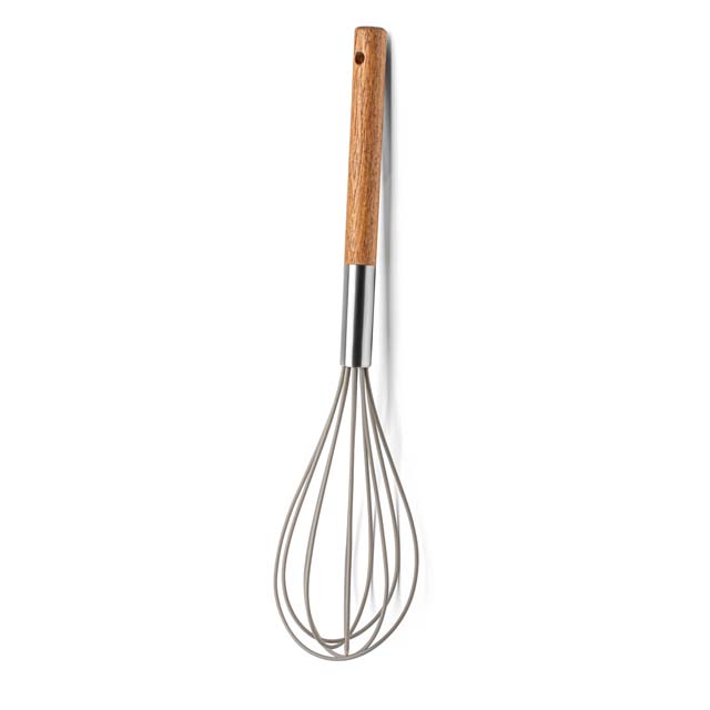 Венчик предназначен для взбивания холодных и горячих продуктов. Изделие прекрасно подойдет для посуды с антипригарным, тефлоновым или керамическим покрытием. Материал изготовления: силикон, нержавеющая сталь 410, дерево (акация).