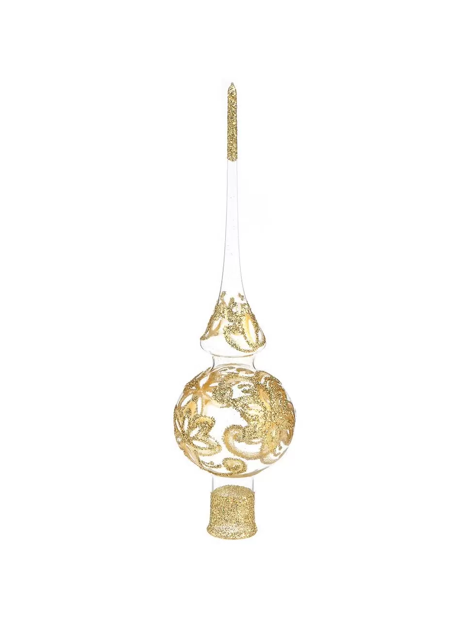 Верхушка на елку Золотой цветок 74: стекло, ручная роспись, блестящее покрытие.