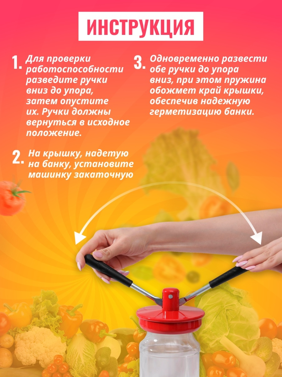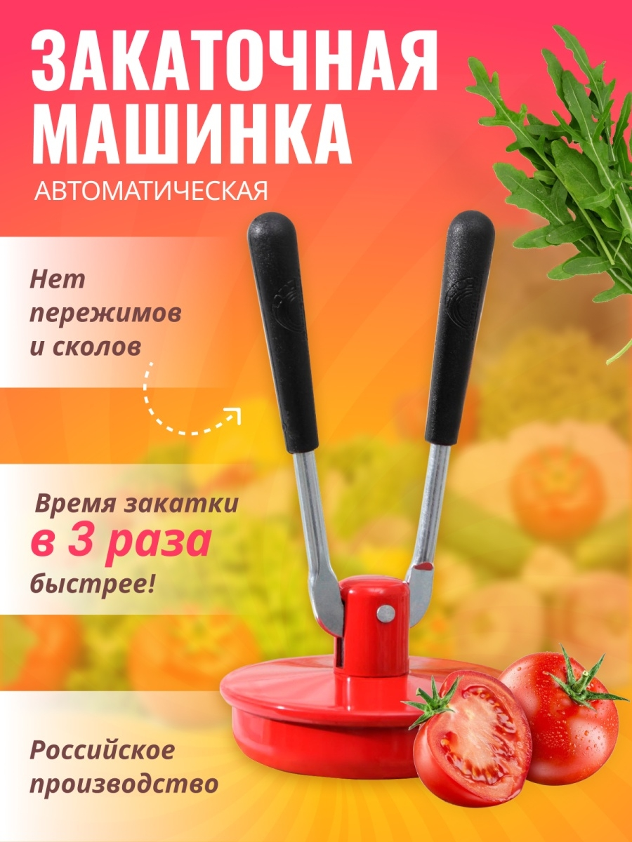 Закаточная машинка автомат подходит для консервирования банок с соленьями и будет незаменимой помощницей на вашей кухне. Машинка для консервирования позволяет без труда и брака закатать ваши вкусные соленья. Кухонная утварь для консервирования проста в использовании и надежна - крутить, как закаточный ключ для банок не нужно, закатывает на автомате! Просто насаживайте крышку на банку, а сверху устанавливаете закрывалку и одним движением производите закатку банок. Усилие для закатки необходимо всего 2,8 кг. Закаточная машинка для банок автомат удобная и практичная, значительно облегчающий процесс закатки домашней консервации - не имеющая аналогов! Подходит для всех видов крышек. Удобство - для закатки не нужно прилагать много усилий. Принцип работы закаточной машинки прост! На закатку одной банки потребуется менее 10 секунд! Посуда для кухни предназначена для герметизации металлическими крышками стеклянных банок со стандартным размером горловины в процессе домашнего приготовления консервированных овощей, фруктов. Преимущества закаточной машинки: жесткая фиксация крышки на банке, равномерное распределение силы обжима по всему ободу крышки, предотвращение пережимов и сколов, идеальный шов. Консервация и закатка банок - отличный подарок для свекрови, тещи, бабушке, дедушке и маме, также идеально закатка банок автомат подойдет как подарок на День матери, 8 марта, день рождения, 23 февраля, подарок коллеге или учителю, подарок на Новый год и Рождество! Закрывалка закруточная отличный подарок для Ваших родных и близких!
