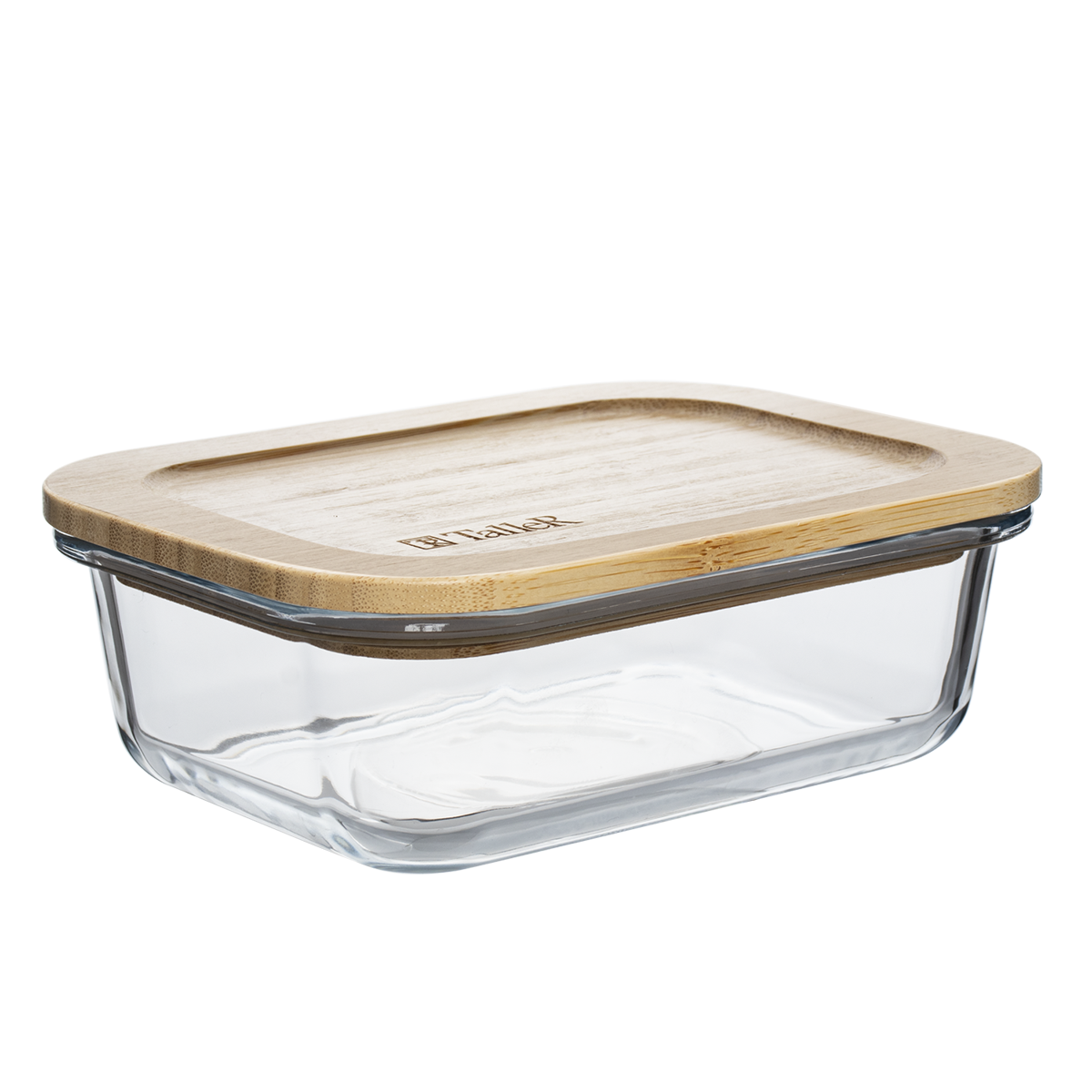 Размеры: 17 х 12,5 х 5,8 см. Объем до краев - 640 мл, полезный объем - 610 мл. Контейнер выполнен из жаропрочного боросиликатного стекла, крышка из бамбука. Температурный режим для контейнера - до +400°C. Температурный режим для крышки - до +30°C. В крышке предусмотрен силиконовый уплотнитель для плотного прилегания крышки к контейнеру (предотвращение заветривания, попадание посторонних запахов и др.). Допустимо использовать в холодильнике. Контейнер может использоваться как форма для запекания в духовке, а также в печи СВЧ (без крышки). Можно использовать для хранения сыпучих продуктов: макаронных изделий, круп, бобовых, сухих грибов и ягод, семечек, орехов, сухофруктов, специй, соли и сахара, а также порезанных овощей и фруктов и др. Обращаем внимание, что контейнер негерметичный. Предназначен для хранения сухих продуктов.